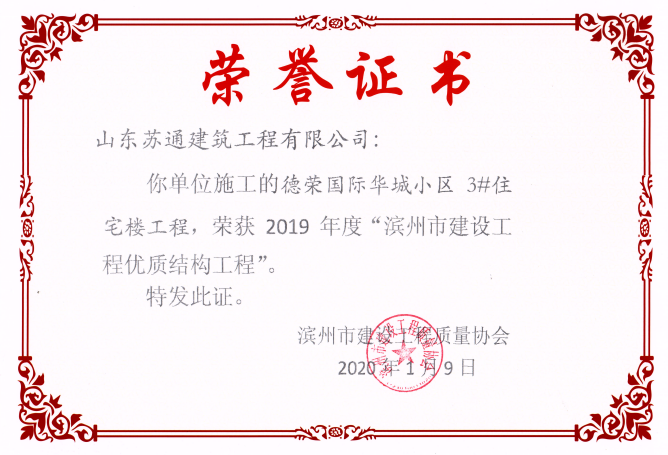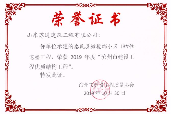 山東蘇通建筑工程有限公司,創(chuàng)建于2009年8月。目前擁有房屋建筑工程施工總承包壹級、市政公用工程施工總承包叁級、水利水電工程施工總承包叁級資質,同時還具有建筑裝修裝飾工程專業(yè)承包貳級、消防設施工程專業(yè)承包貳級、鋼結構工程專業(yè)承包叁級、建筑機電安裝工程專業(yè)承包叁級等專業(yè)承包資質。 公司總部坐落于山東省濱州市濱城區(qū)黃河十二路877號,現(xiàn)有辦公面積約2000平方米,機構設黨支部工會辦公室、總經(jīng)理辦公室、綜合辦公室、工程管理部、經(jīng)營預算部、資產(chǎn)財務部、材料設備部、運行管理部、法律事務部等多個職能部門。公司管理體系已經(jīng)通過了GB/T 19001及GB/T 50430質量管理體系、GB/T 24001環(huán)境管理體系(EMS)、GB/T 28001職業(yè)健康安全管理體系(OHSMS)等體系的認證。 公司承建完工了濱州市建大教師之家、建大清怡苑、香格里拉水岸綠城住宅小區(qū)、雙泰建大城、曲阜崇德公館住宅小區(qū)、北海新區(qū)御景藍灣住宅小區(qū)、沾化德榮國際華城住宅小區(qū)、惠民橄欖郡住宅小區(qū)等工程項目,目前在建工程項目有:濱州市頤高國際電子商務產(chǎn)業(yè)園住宅小區(qū)項目、濱州市東盛國際項目、高新區(qū)建大中央華府住宅小區(qū)項目、濱州市融匯新里程住宅小區(qū)項目、濱州市建大秦皇壹號住宅小區(qū)項目、濱州市森林花...
